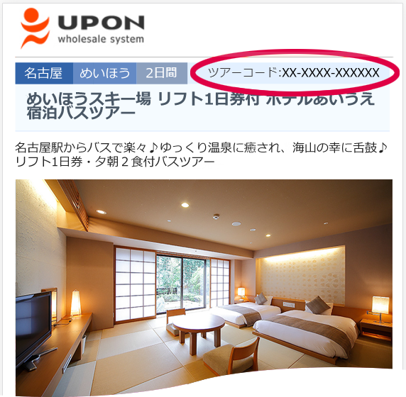 ご希望コース・プラン画面右上に記載のツアーコードをオペレーターへお伝えください。